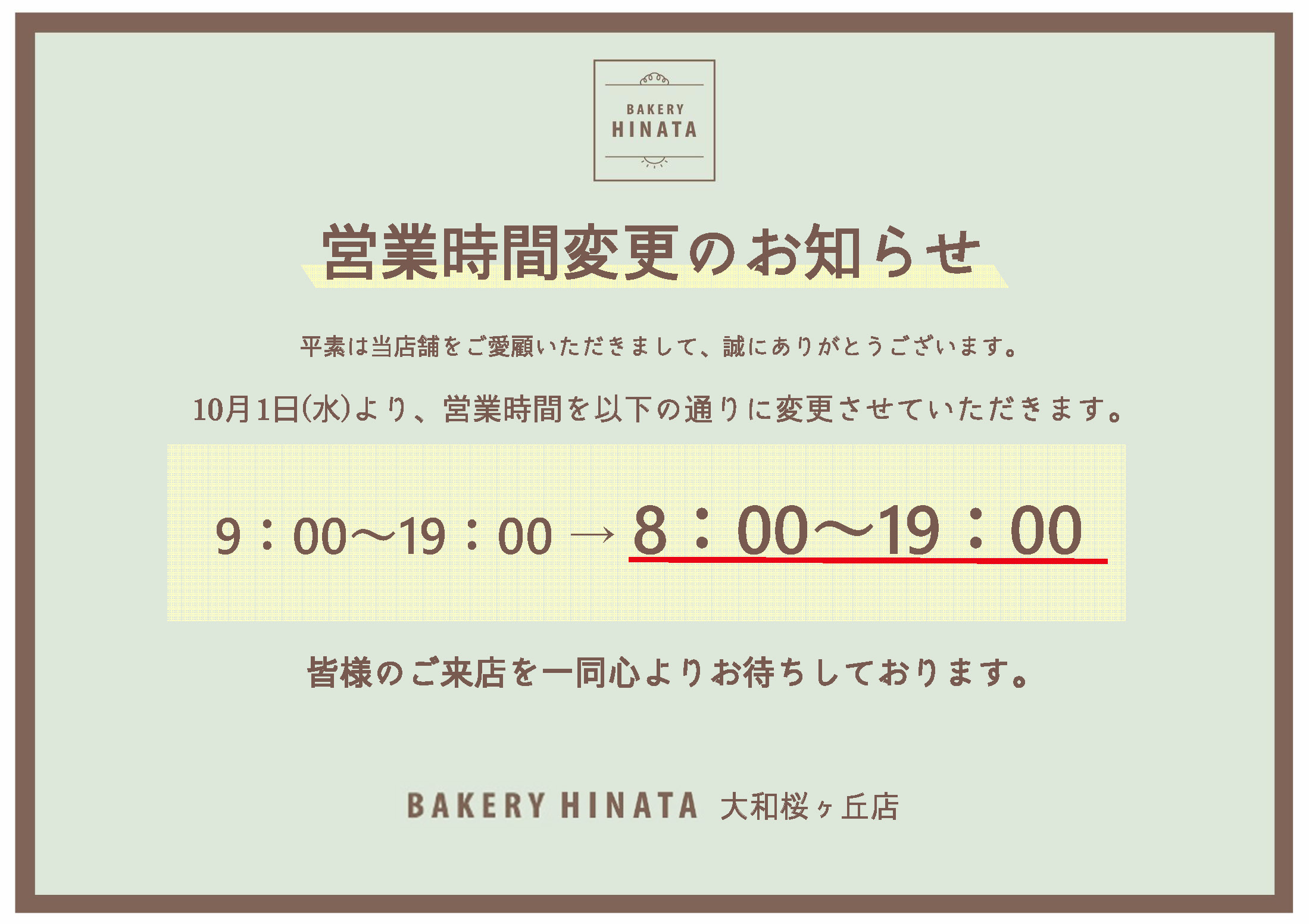 大和桜ヶ丘店 営業時間変更のお知らせ
