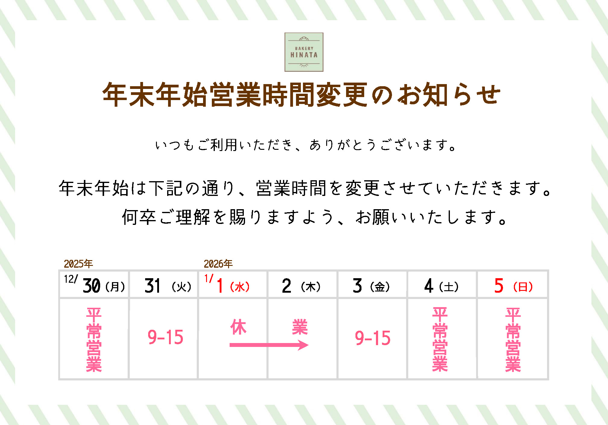 国分寺東戸倉店 2025年度 年末年始営業時間のお知らせ