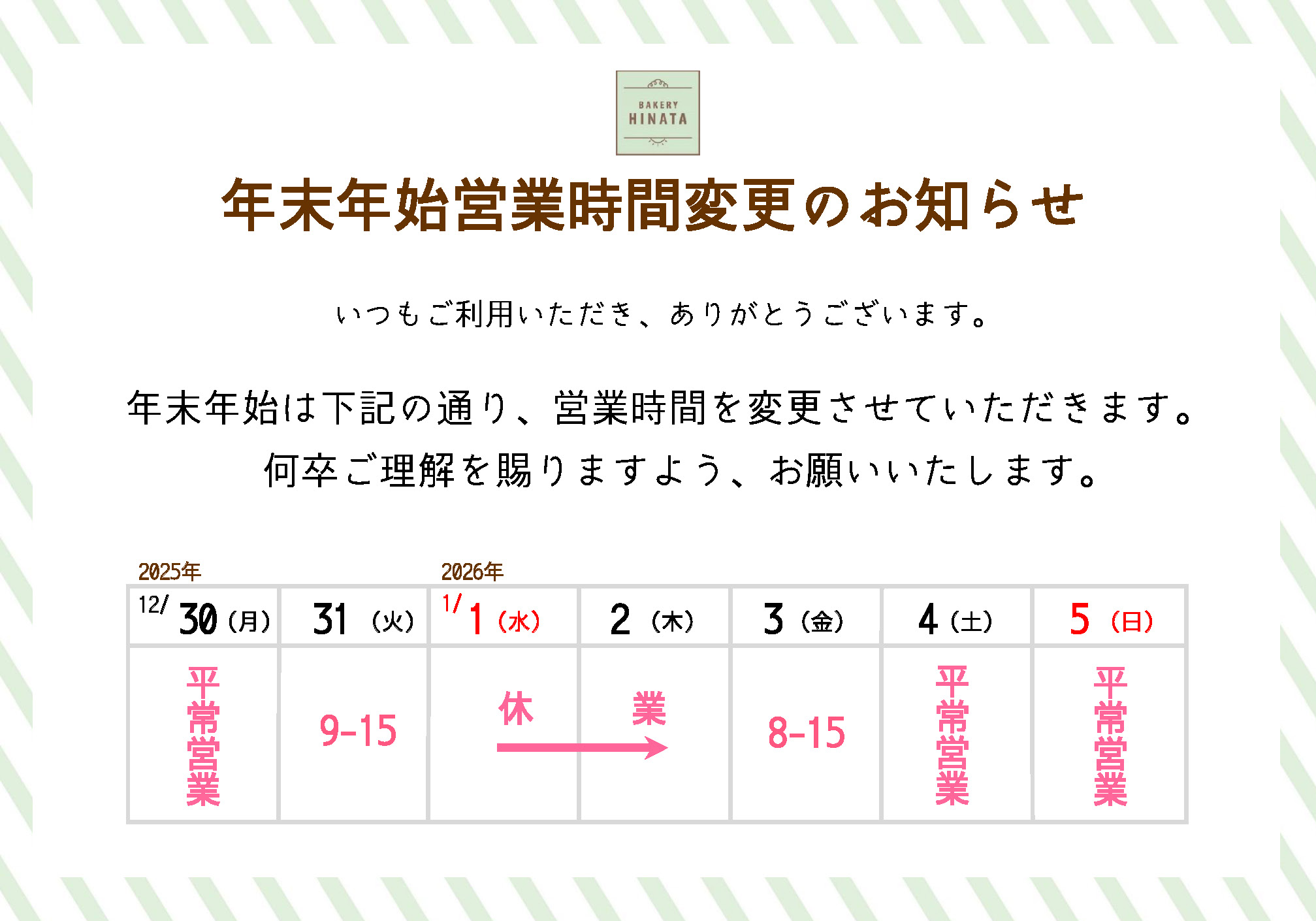 大和桜ヶ丘店 2025年度 年末年始営業時間のお知らせ